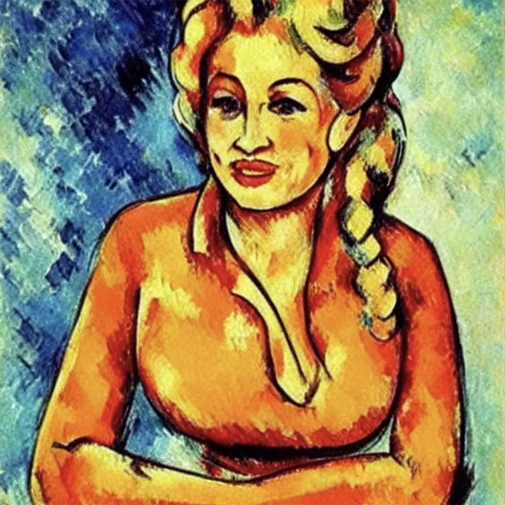 Musical Artist Dolly Parton in the style of Visual Artist Paul Cezanne, from the Artists Meet Artists Collection