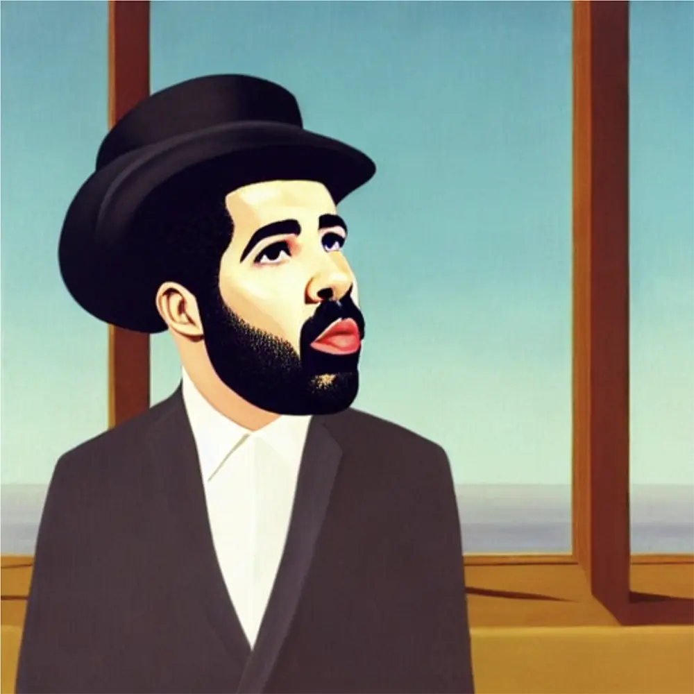 Musical Artist Drake in the style of Visual Artist Rene Magritte, from the Artists Meet Artists Collection