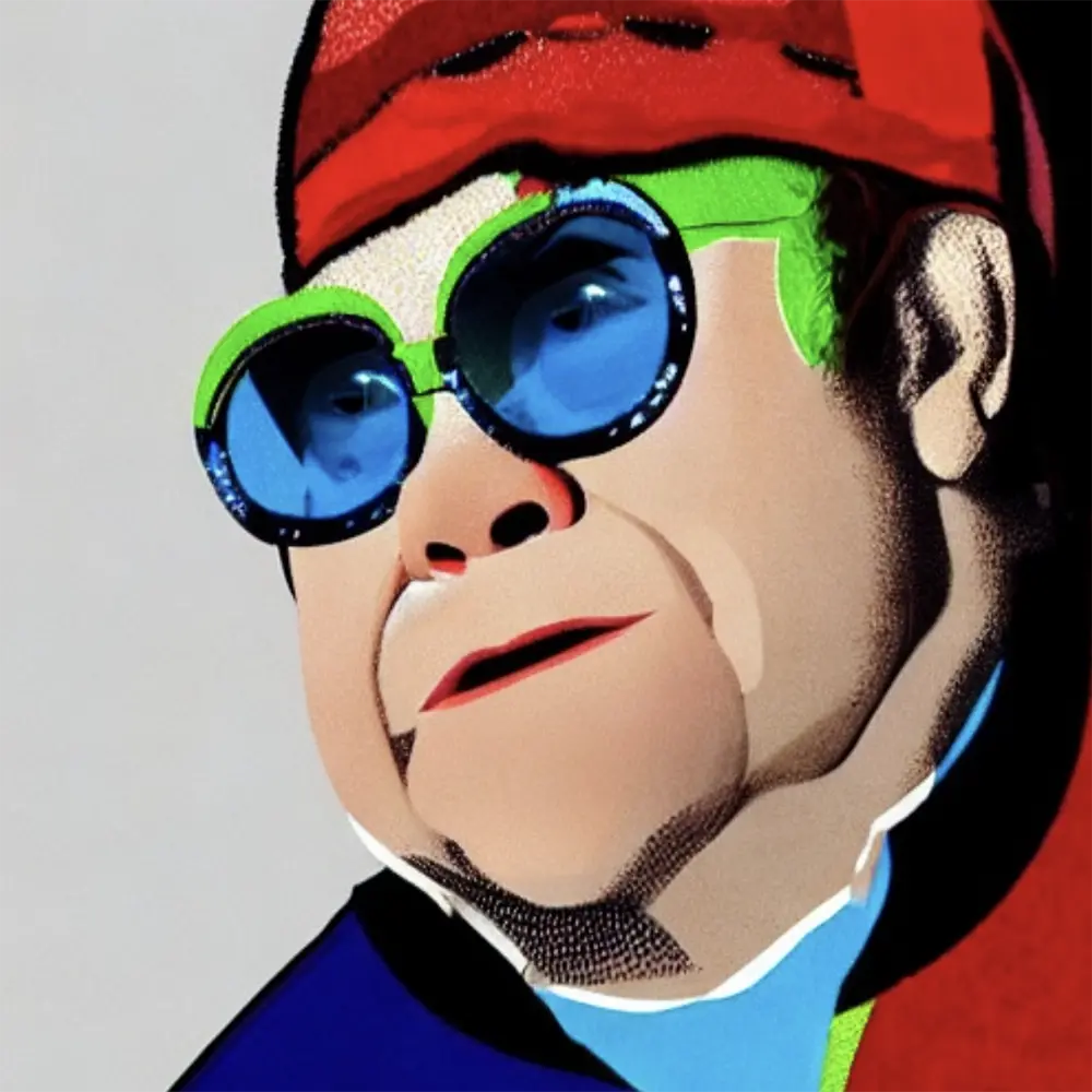 Musical Artist Elton John in the style of Visual Artist Banksy, from the Artists Meet Artists Collection