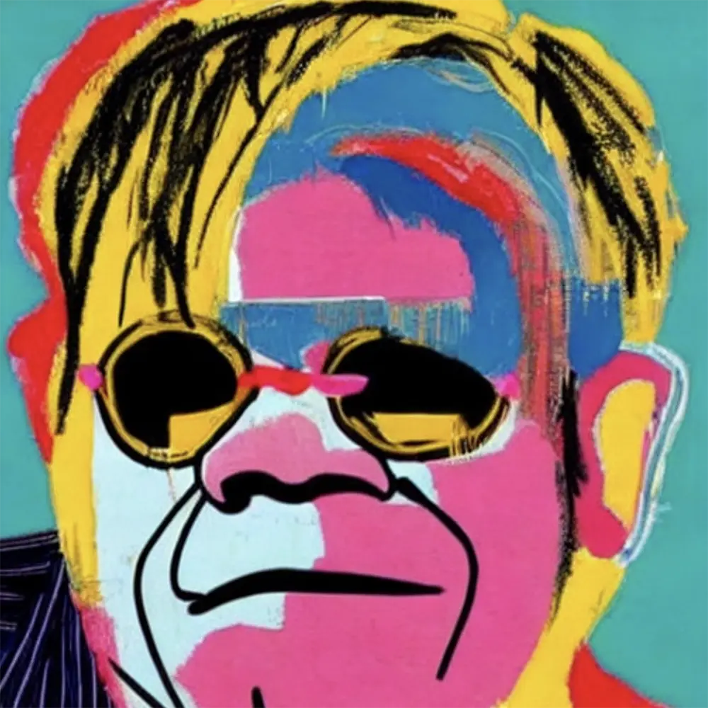 Musical Artist Elton John in the style of Visual Artist Jean-Michel Basquiat, from the Artists Meet Artists Collection