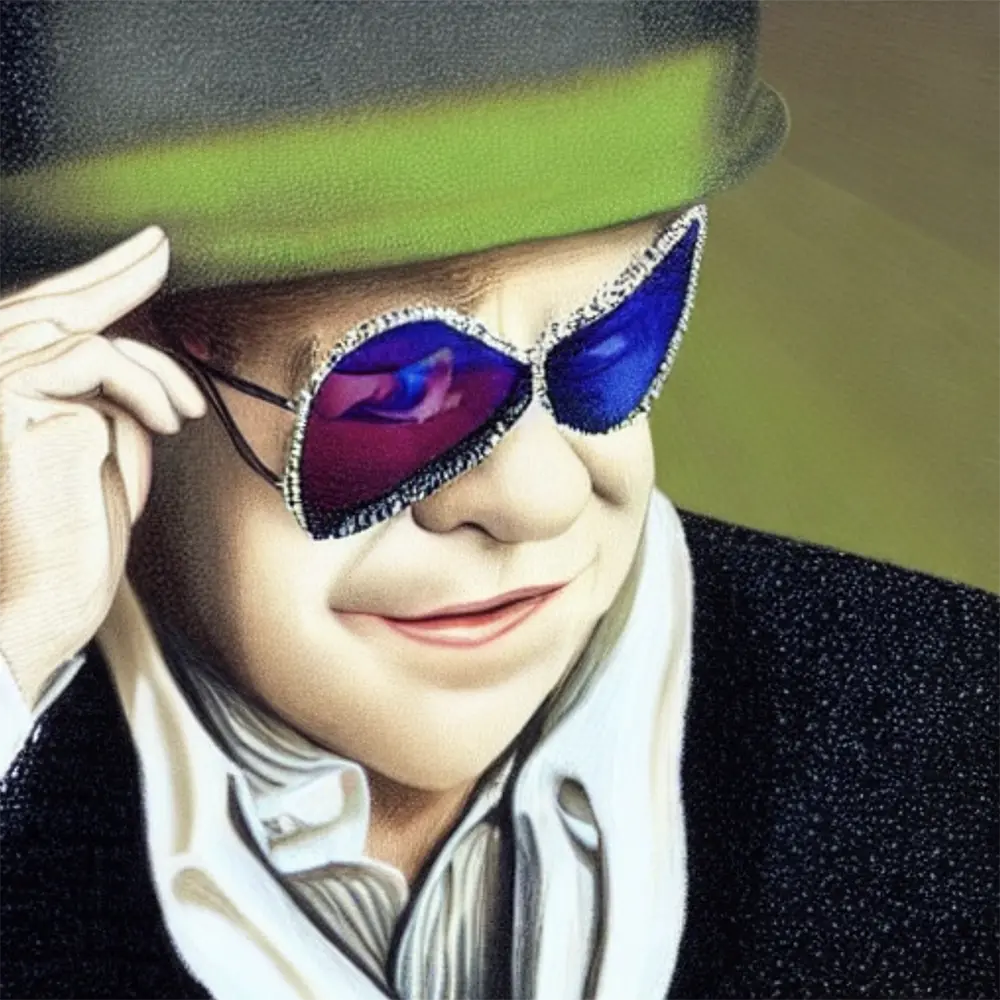 Musical Artist Elton John in the style of Visual Artist Rene Magritte, from the Artists Meet Artists Collection