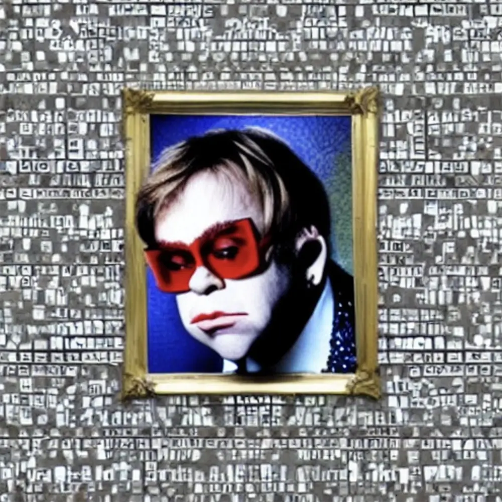 This exceptional transformative piece of art is a unique portion of the fantastical artwork Artists Meet Artists. As envisaged and then passionately created, Artists Meet Artists is a technically masterful, thought provoking, intellectually stimulating, emotion evoking, historically and culturally significant, didactic, immense, unequivocally transformative one-of-a-kind work of art, comprising 25,600 such individually qualifying works of art from the pioneering state-of-the-art Artists Meet Artists creation. Each of the matchless 25,600 pieces of generative art, collectively Artists Meet Artists, exclusively envisions one of 36 among the greatest musical artists of our lives having an opportunity to meet and be painted in the style of one of 69 of the greatest visual artists of the past six centuries, each distinctive square an artistic fantasy Artists Meet Artists pairing, most requiring time travel. This piece imagines the Musical Artist Elton John meets and is painted by the Visual Artist Salvador Dali.
