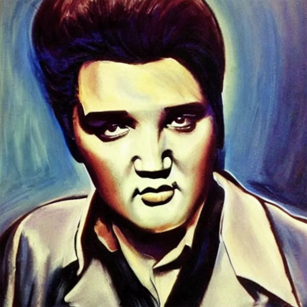Musical Artist Elvis Presley in the style of Visual Artist Pablo Picasso, from the Artists Meet Artists Collection