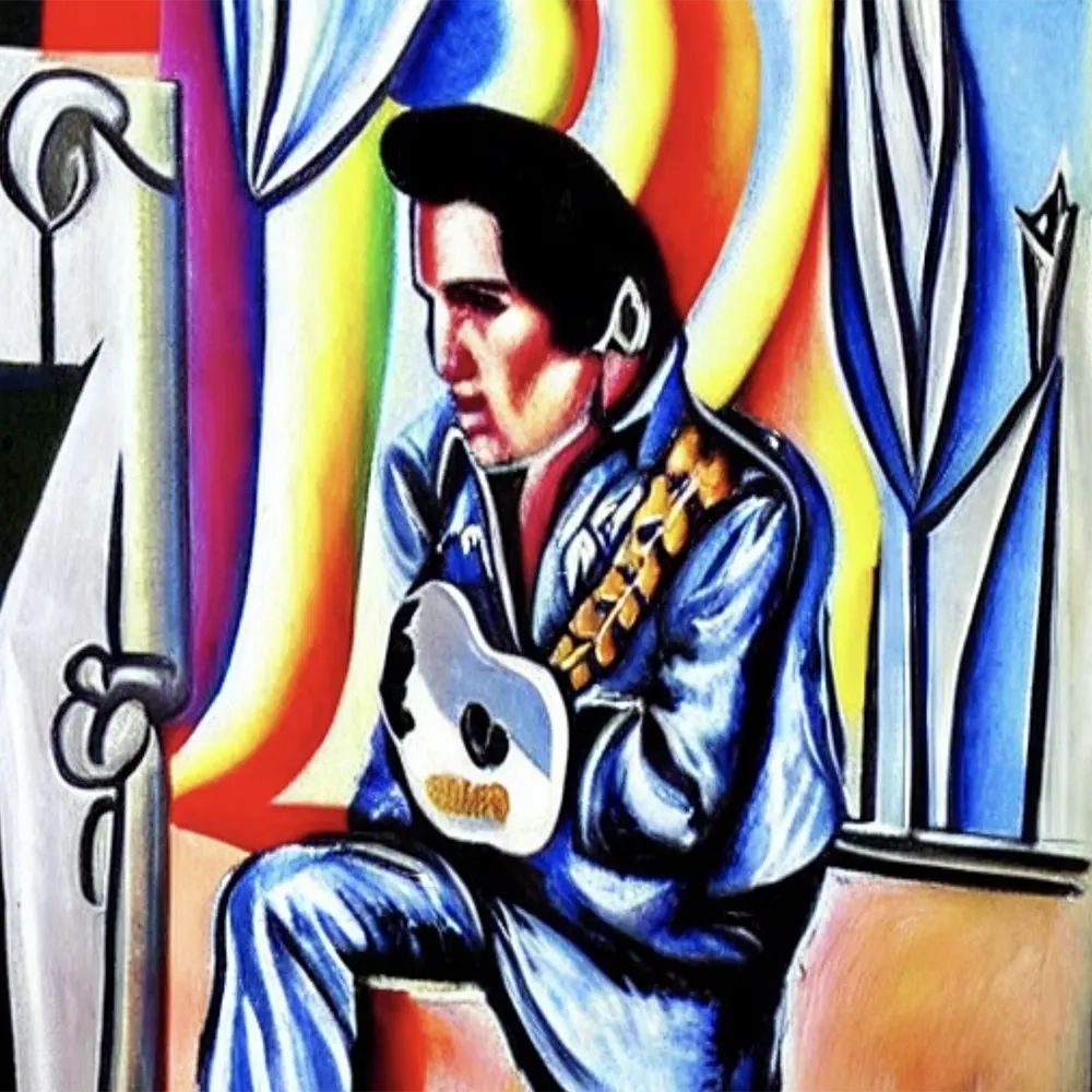 Musical Artist Elvis Presley in the style of Visual Artist Pablo Picasso, from the Artists Meet Artists Collection