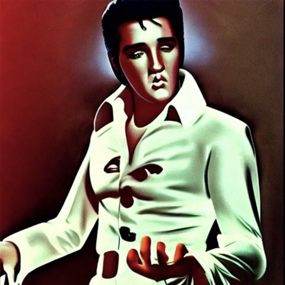 Musical Artist Elvis Presley in the style of Visual Artist Salvador Dali, from the Artists Meet Artists Collection