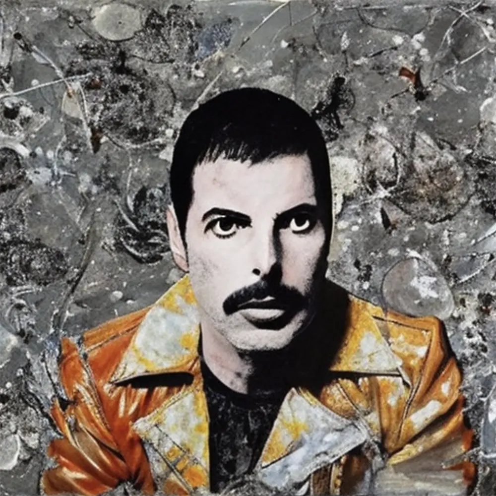 Musical Artist Freddie Mercury in the style of Visual Artist Anselm Kiefer, from the Artists Meet Artists Collection