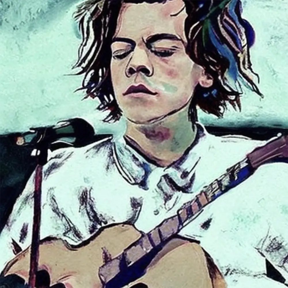 Musical Artist Harry Styles in the style of Visual Artist Whistler, from the Artists Meet Artists Collection