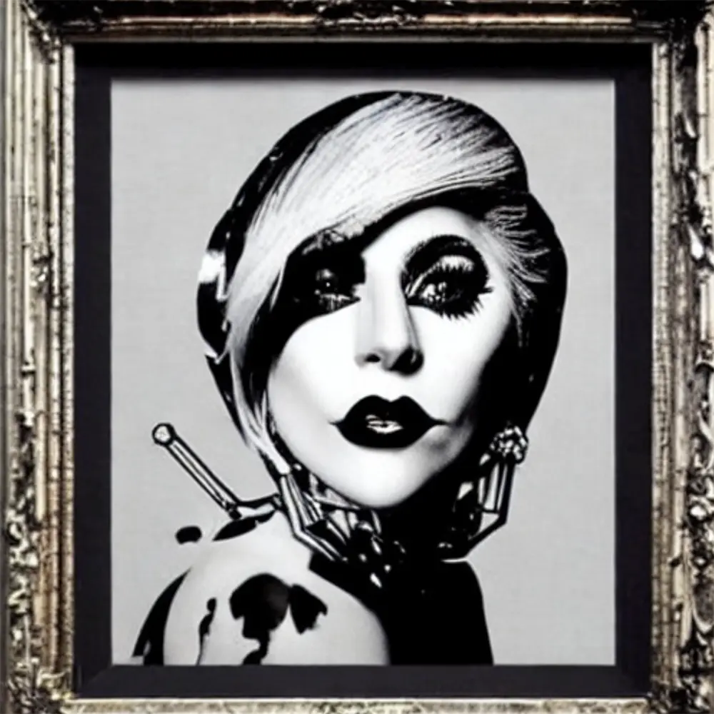 Musical Artist Lady Gaga in the style of Visual Artist Banksy, from the Artists Meet Artists Collection