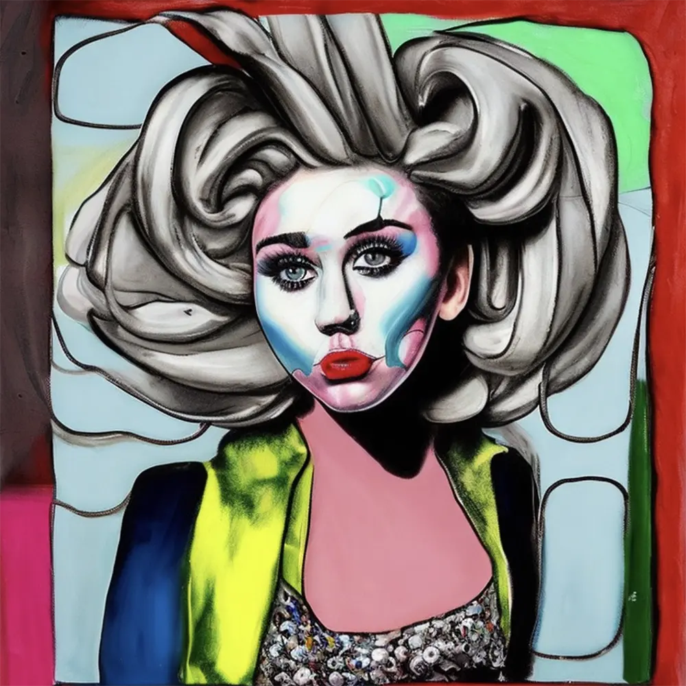 Musical Artist Miley Cyrus in the style of Visual Artist George Condo, from the Artists Meet Artists Collection