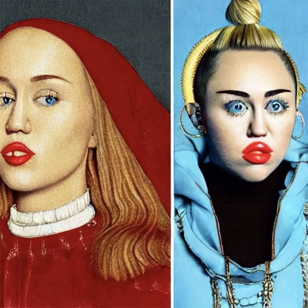 Musical Artist Miley Cyrus in the style of Visual Artist Jan van Eyck, from the Artists Meet Artists Collection