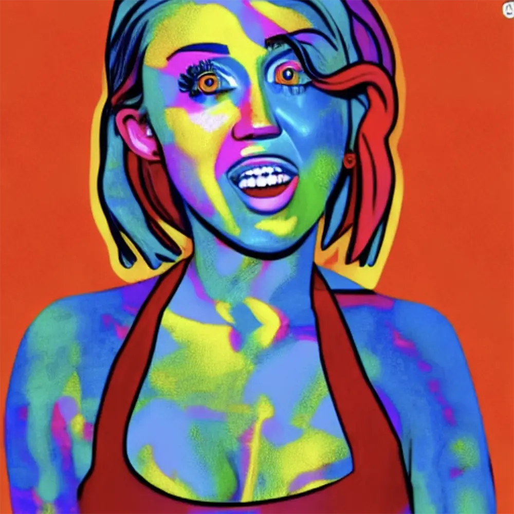 Musical Artist Miley Cyrus in the style of Visual Artist Pablo Picasso, from the Artists Meet Artists Collection