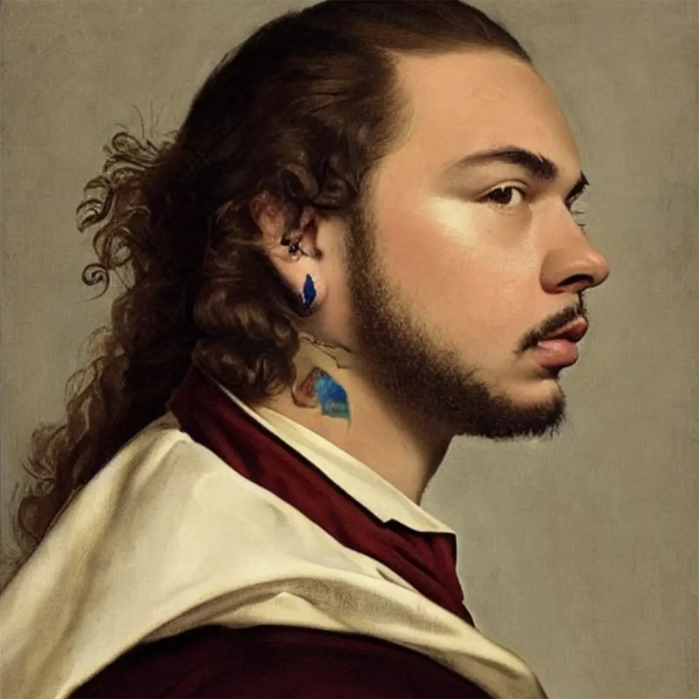 Musical Artist Post Malone in the style of Visual Artist Jacques-Louis David, from the Artists Meet Artists Collection