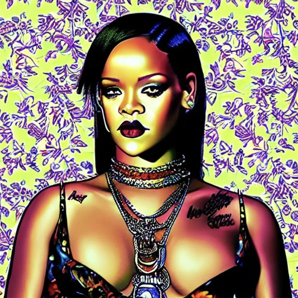 Musical Artist Rihanna in the style of Visual Artist Kehinde Wiley, from the Artists Meet Artists Collection