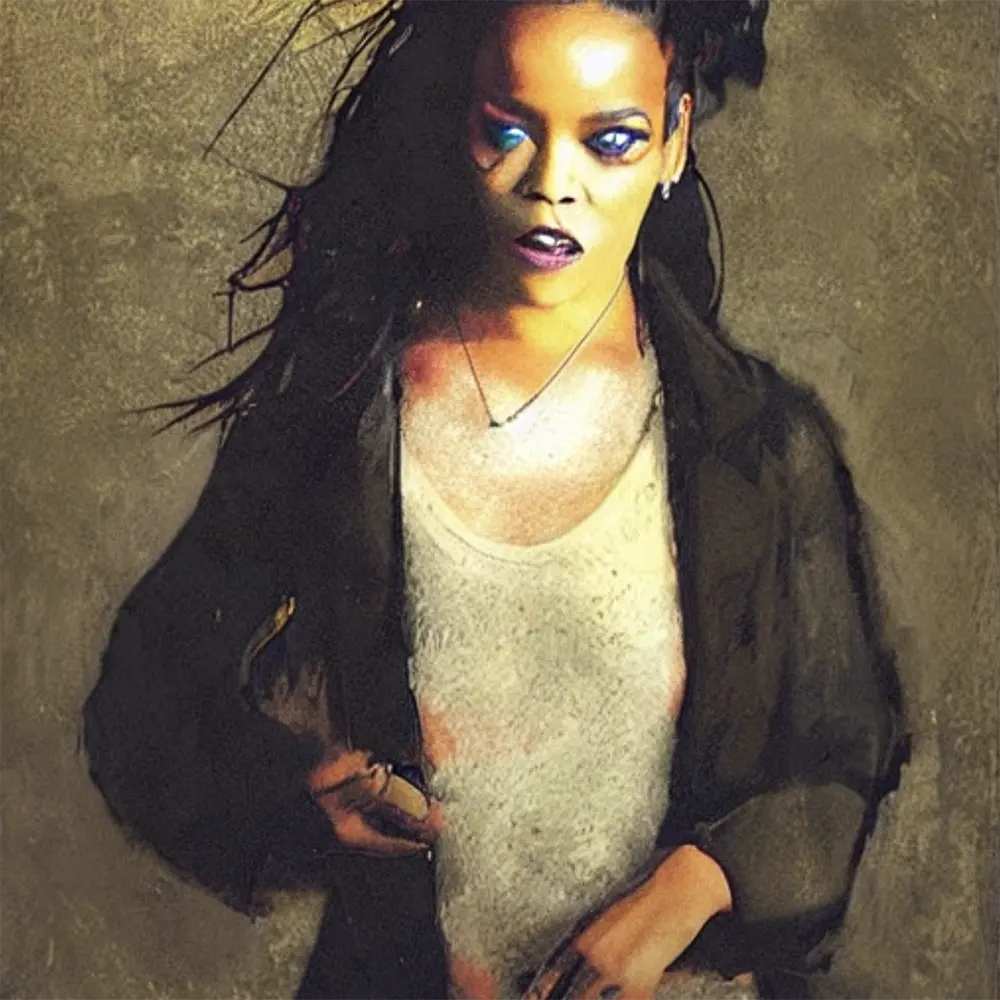 Musical Artist Rihanna in the style of Visual Artist Whistler, from the Artists Meet Artists Collection
