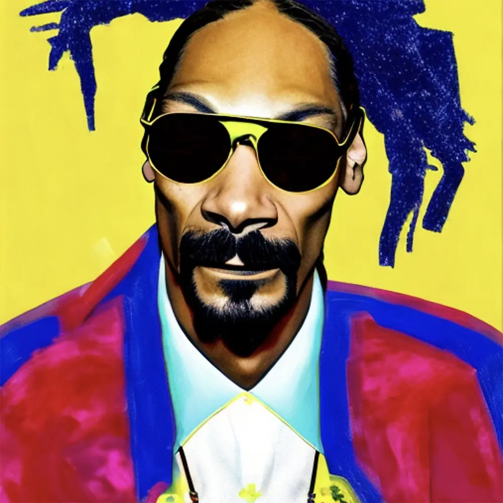 This exceptional transformative piece of art is a unique portion of the fantastical artwork Artists Meet Artists. As envisaged and then passionately created, Artists Meet Artists is a technically masterful, thought provoking, intellectually stimulating, emotion evoking, historically and culturally significant, didactic, immense, unequivocally transformative one-of-a-kind work of art, comprising 25,600 such individually qualifying works of art from the pioneering state-of-the-art Artists Meet Artists creation. Each of the matchless 25,600 pieces of generative art, collectively Artists Meet Artists, exclusively envisions one of 36 among the greatest musical artists of our lives having an opportunity to meet and be painted in the style of one of 69 of the greatest visual artists of the past six centuries, each distinctive square an artistic fantasy Artists Meet Artists pairing, most requiring time travel. This piece imagines the Musical Artist Snoop Dogg meets and is painted by the Visual Artist Richard Prince.