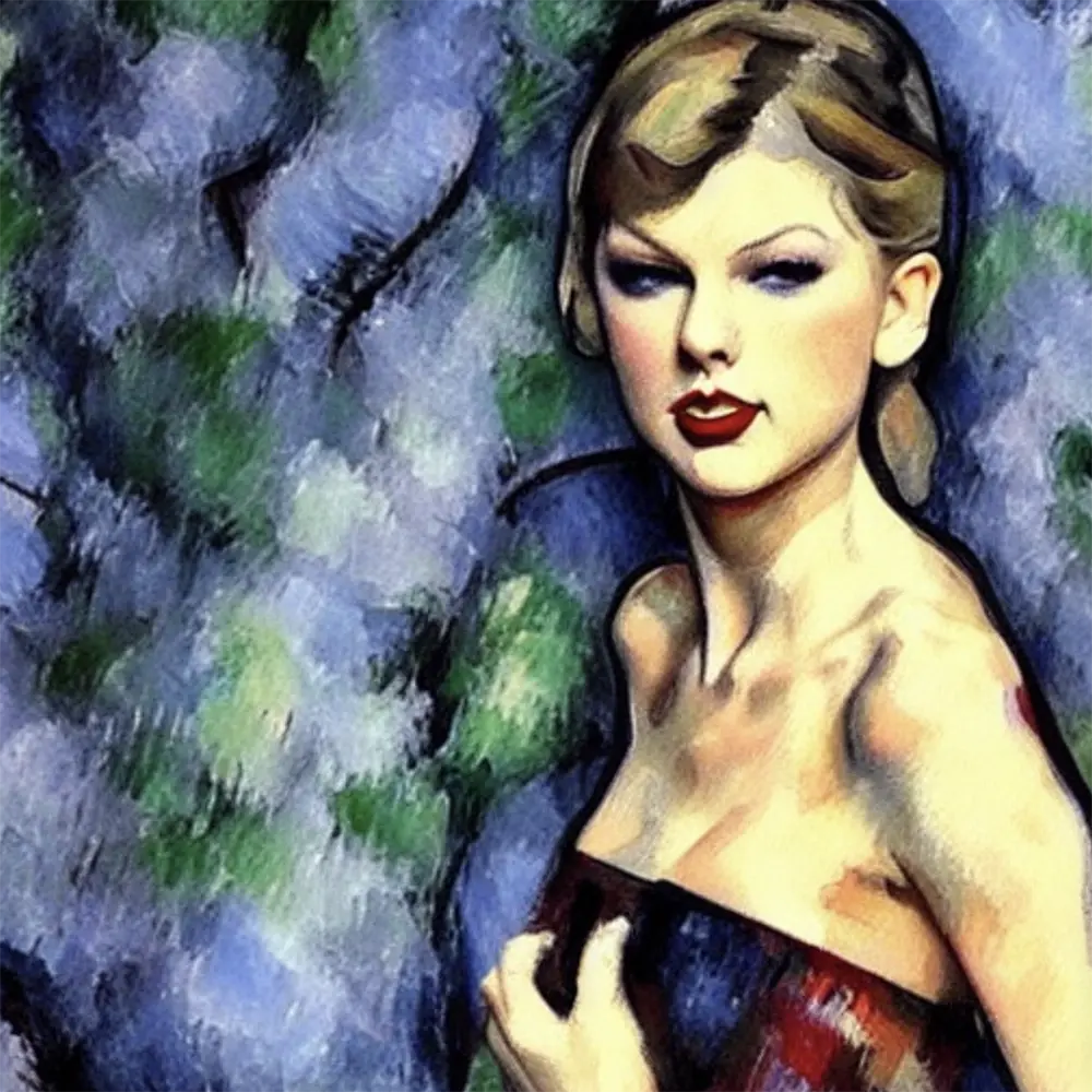 Musical Artist Taylor Swift in the style of Visual Artist Paul Cezanne, from the Artists Meet Artists Collection