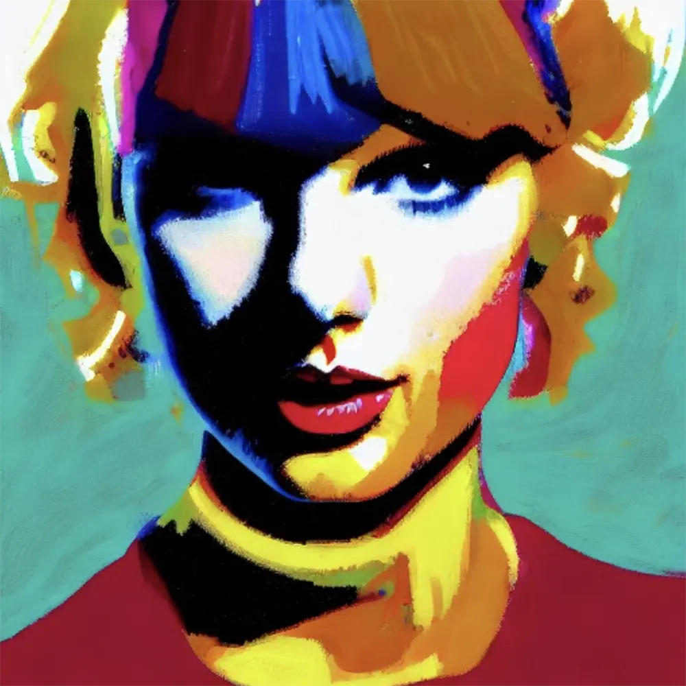 Musical Artist Taylor Swift in the style of Visual Artist Piet Mondrian, from the Artists Meet Artists Collection